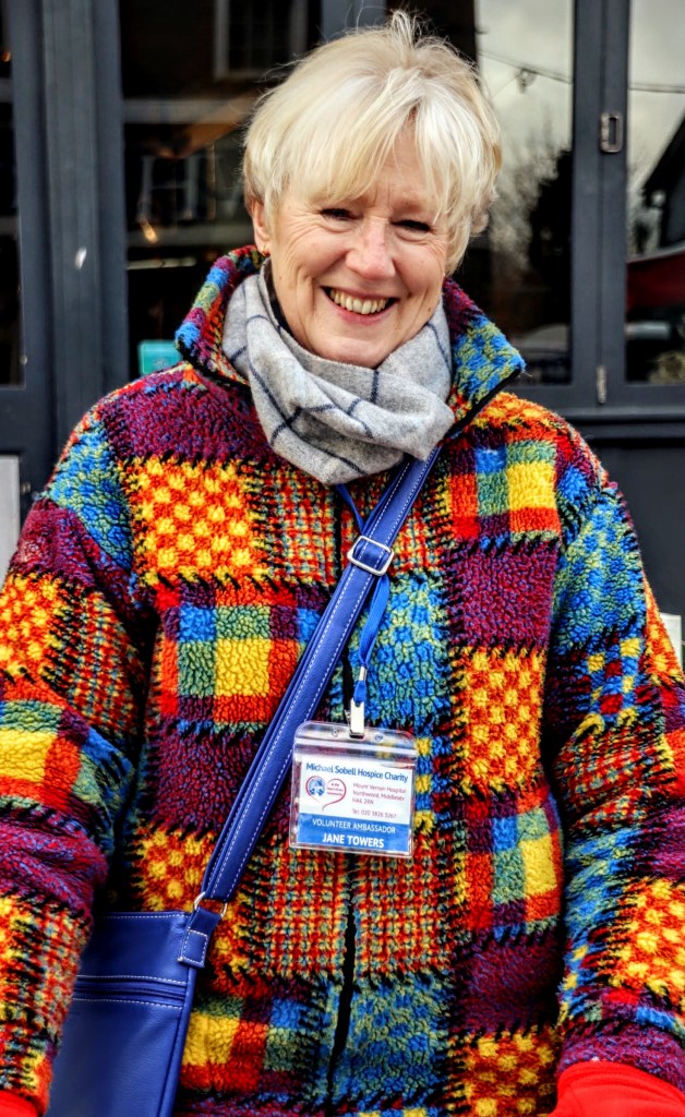 As I was about to leave, I commented on the bright colours of another volunteer’s winter coat. David introduced me to Jane, who was busy sorting out the books, and she didn’t take much persuading to pose for me, and I’m glad she did.