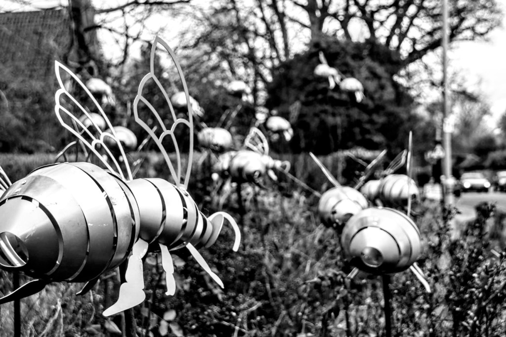 And whilst I was at Sycamore Corner, I enjoyed the Town Council’s wonderful Platinum Jubilee Pollinator Bed. It’s a small garden promoting the benefits of flowers to attract pollinators, and it shares some staggering statistics. One is that over the last 50 years, the UK bee, moth and butterfly population has halved due to the loss of wildflower meadows. There’s also a collection of sculpted bees flying through the garden.
