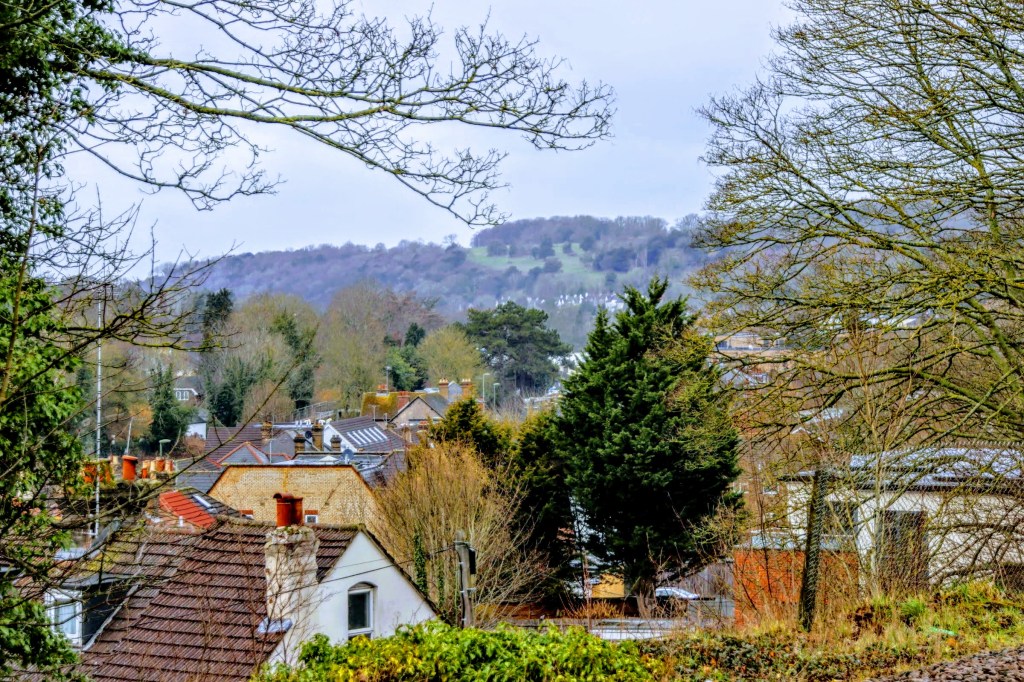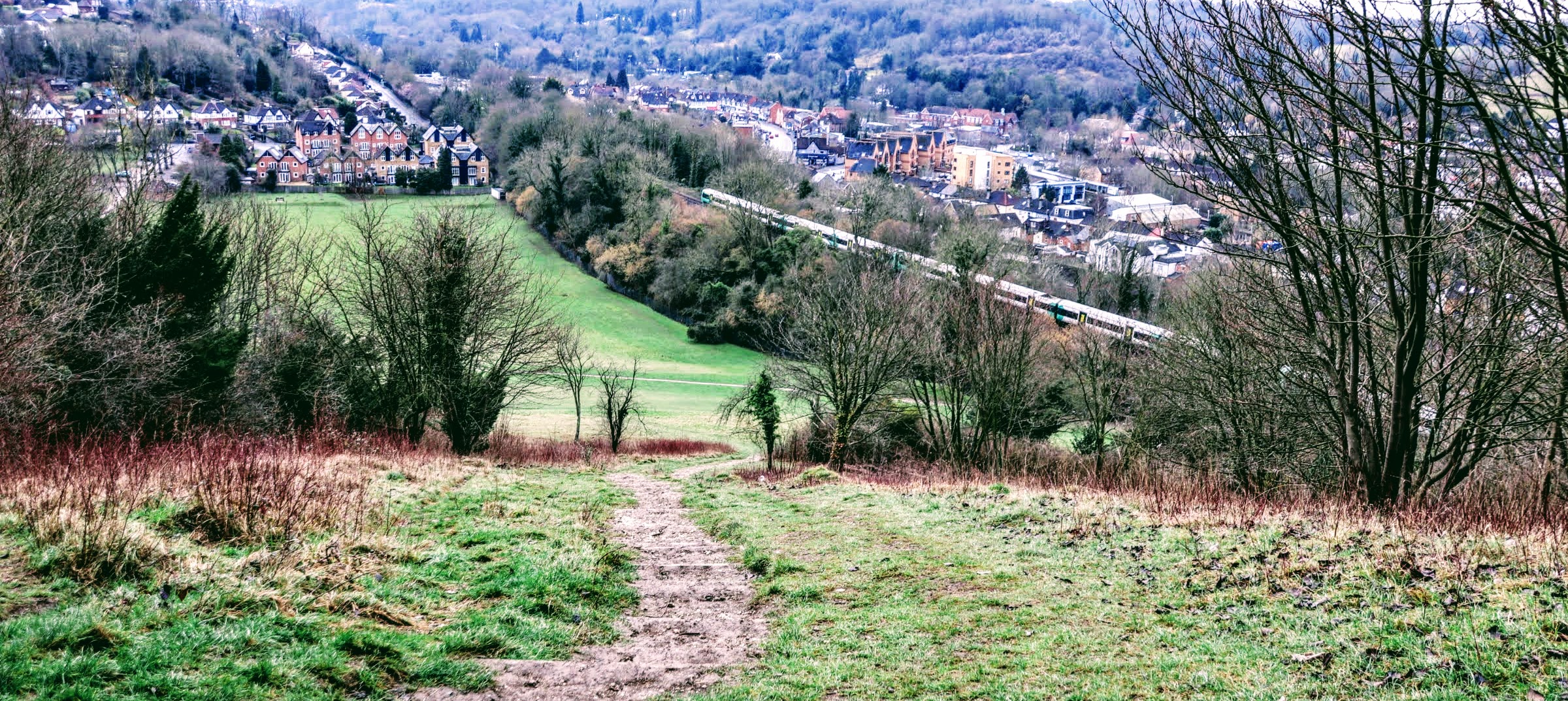 But the view when you reach the top is quite something, and if you know where to look, you can see both Upper Warlingham and Whyteleafe stations. I timed this shot as a London-bound train had just left Upper Warlingham. You can make out the Devil’s Steps in the foreground leading down to the recreation ground.