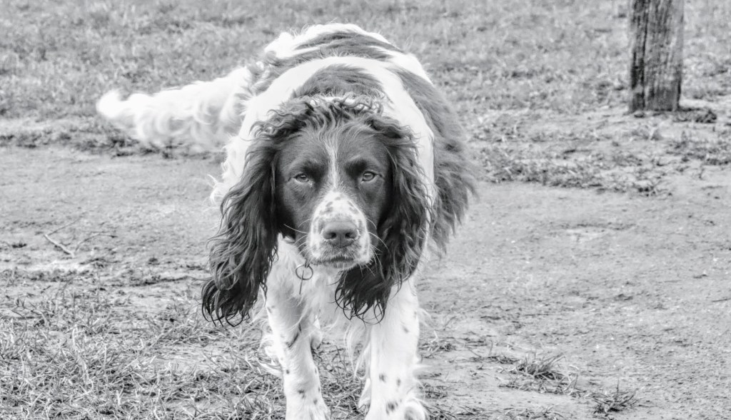 But first, as I enjoyed the expanse of the recreation ground, I stopped to chat with a dog walker inviting me to capture his dogs whilst running across the grounds. He had five dogs: two greyhounds crossbreed and three spaniels. The Spaniels were more in the mood to chase the ball I was throwing, but their speed was a particular challenge. Nevertheless, I managed to capture one shot of this spaniel in focus as he ran towards me. They were friendly enough despite the appearance suggesting otherwise in this photo.