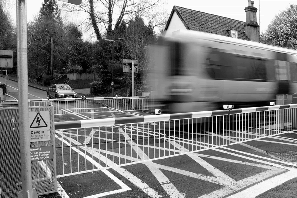 The boundary between Warlingham and Whyteleafe is the A22 Godstone Road, which runs north/south between the Oxted and Caterham railway lines. And these two stations lie on the western side of the divide along the Caterham line. The railway line at both stations crosses relatively minor roads, so there are only automated barriers to protect road users and passengers. The photo below is the 11:27 from Whyteleafe South to Caterham as it passes over Salmons Lane. The gates close some 5 minutes before the train’s arrival, and those waiting to cross did so patiently.